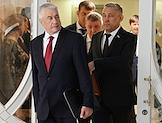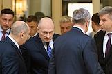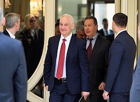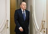 An extraordinary meeting of the Russian Federation Council to discuss candidates for the posts of heads of law enforcement agencies and the Russian Ministry of Foreign Affairs. Candidate for the post of Minister of Internal Affairs of Russia Vladimir Kolokoltsev (left) before the start of the meeting.