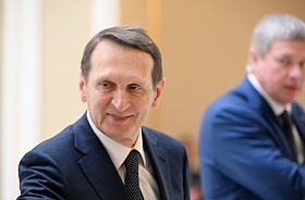 An extraordinary meeting of the Federation Council to discuss candidates for the posts of heads of law enforcement agencies and the Russian Ministry of Foreign Affairs. Candidate for the post of Director of the Foreign Intelligence Service Sergei Naryshkin before the start of the meeting.