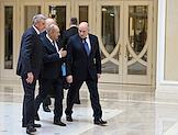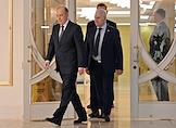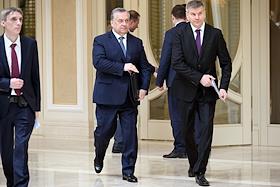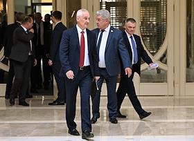 An extraordinary meeting of the Federation Council of Russia to discuss candidates for the posts of heads of the Russian law enforcement agencies and the Russian Ministry of Foreign Affairs. Candidate for the post of Chairman of the Accounts Chamber of Russia Boris Kovalchuk (right) before the start of the meeting.