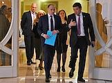 An extraordinary meeting of the Federation Council (FC) of Russia to discuss candidates for the posts of heads of law enforcement agencies of Russia and the Ministry of Foreign Affairs of Russia. Candidate for the post of Chairman of the Accounts Chamber of Russia Boris Kovalchuk (center) before the start of the meeting.