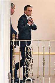An extraordinary meeting of the Russian Federation Council to discuss candidates for the posts of heads of law enforcement agencies and the Russian Ministry of Foreign Affairs. Candidate for the post of Manager of the Foreign Intelligence Service Sergei Naryshkin before the start of the meeting.