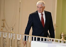 An extraordinary meeting of the Russian Federation Council to discuss candidates for the posts of heads of law enforcement agencies and the Russian Ministry of Foreign Affairs. Candidate for the post of Minister of Justice of Russia Konstantin Chuychenko (left) before the start of the meeting.
