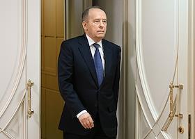 An extraordinary meeting of the Russian Federation Council to discuss candidates for the posts of heads of law enforcement agencies and the Russian Ministry of Foreign Affairs. Candidate for the position of manager Alexander Bortnikov (left) before the start of the meeting.