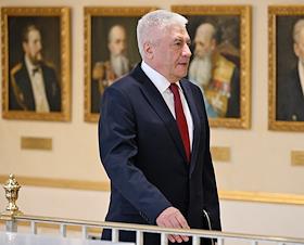 An extraordinary meeting of the Federation Council to discuss candidates for the posts of heads of law enforcement agencies and the Russian Ministry of Foreign Affairs. Candidate for the post of Minister of Internal Affairs of Russia Vladimir Kolokoltsev before the start of the meeting.