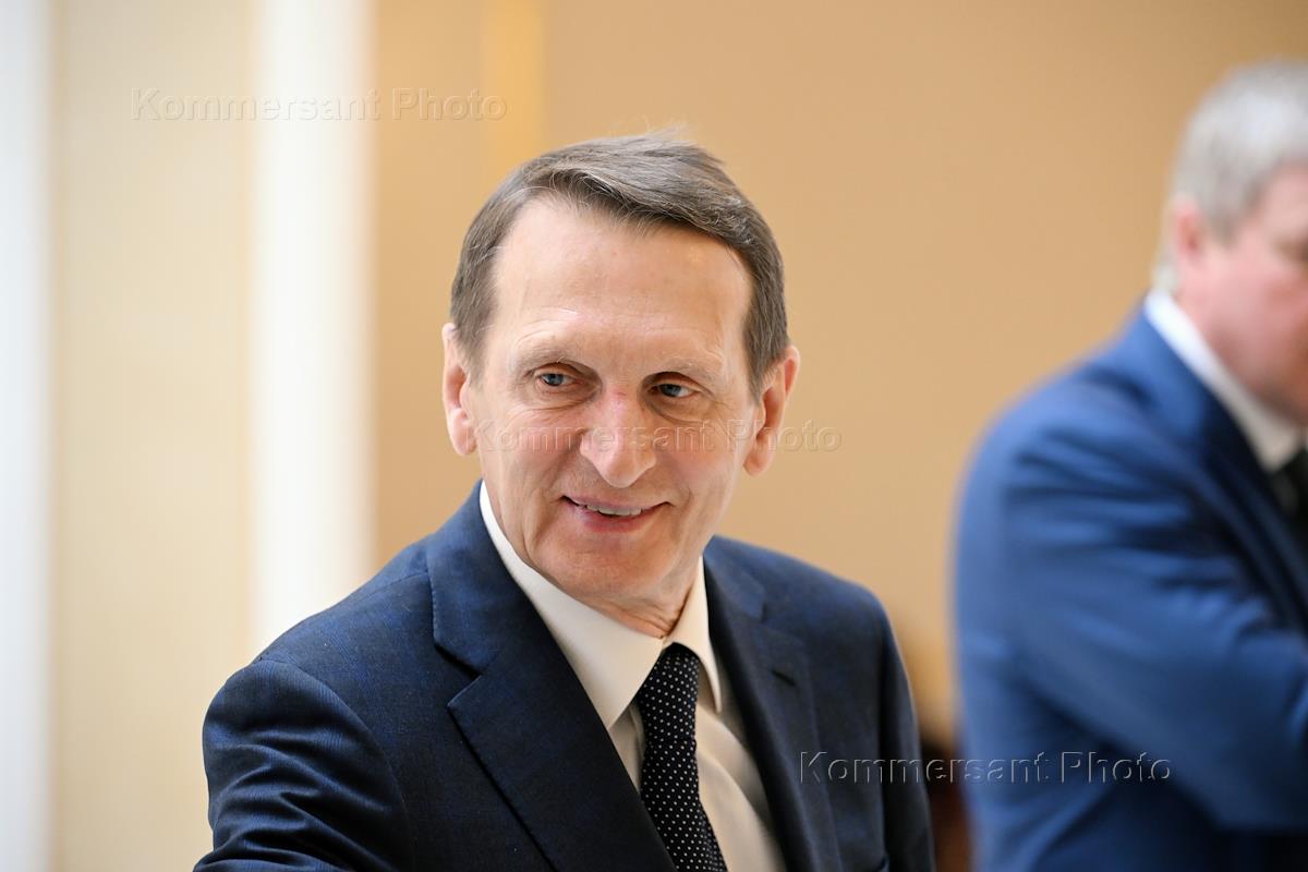 Внеочередное заседание Совета Федерации России для обсуждения кандидатов на посты руководителей силовых ведомств и Министерства иностранных дел России. Кандидат на должность директора Службы внешней разведки России Сергей Нарышкин перед началом заседания.