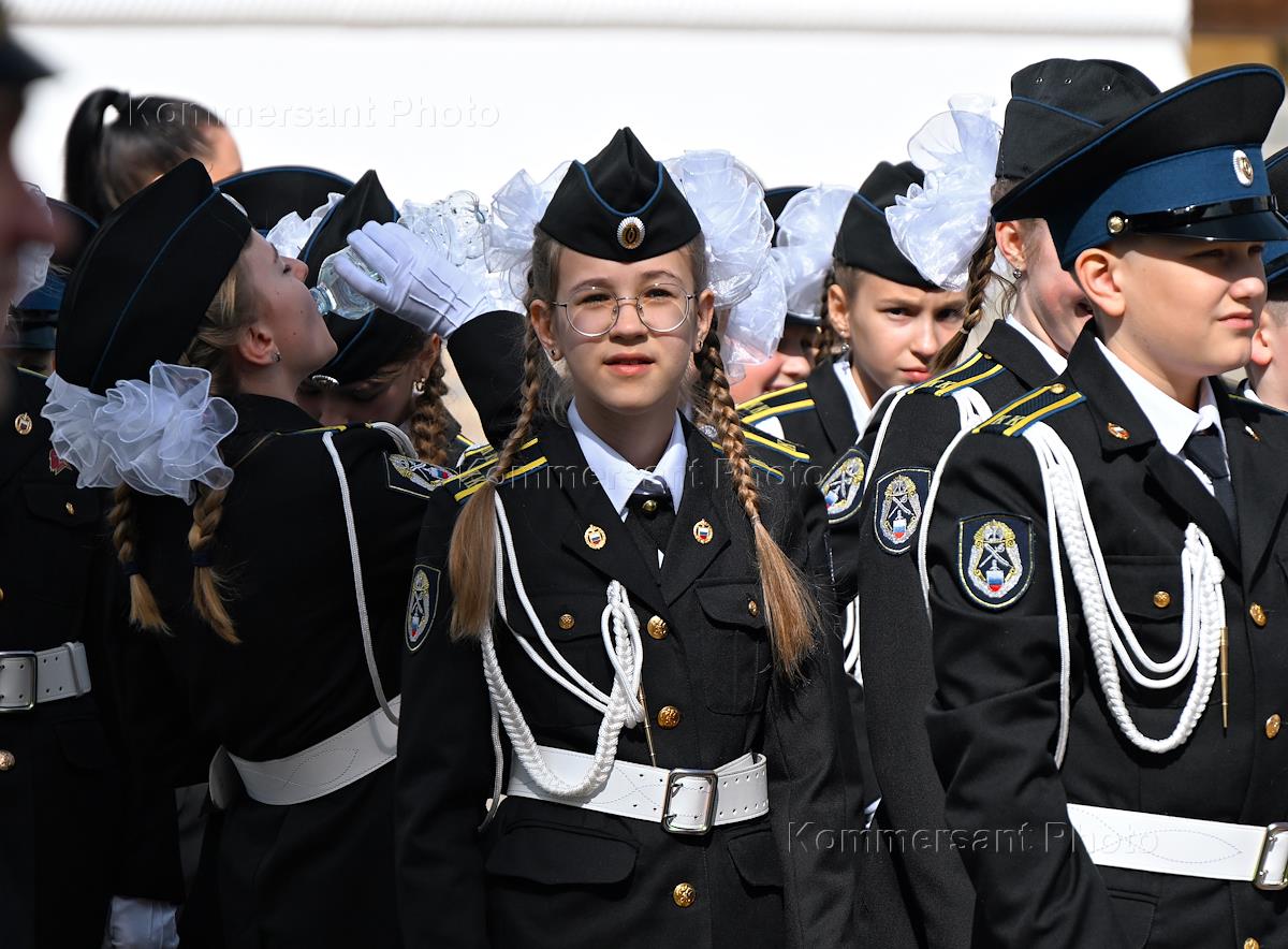 Церемония приведения к клятве учащихся кадетских и юнармейских классов Федеральной службы охраны (ФСО) России на Соборной площади Московского Кремля. Участники во время церемонии.