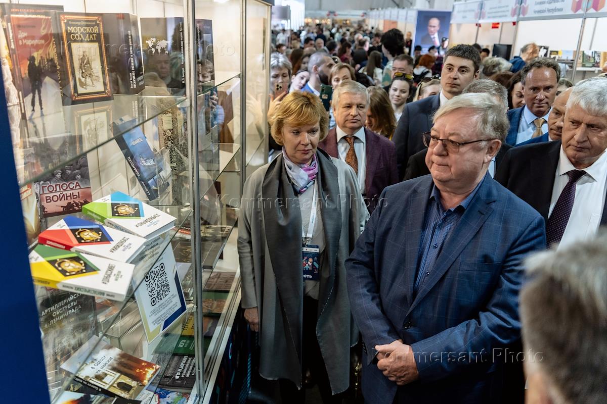 Церемония открытия XIX Санкт-Петербургского международного книжного салона на Дворцовой площади. Губернатор Санкт-Петербурга Александр Беглов (слева) и президент Российского книжного союза Сергей Степашин (в центре) во время церемонии.