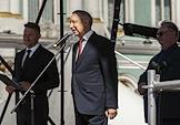 Церемония открытия XIX Санкт-Петербургского международного книжного салона на Дворцовой площади. Губернатор Санкт-Петербурга Александр Беглов (в центре) и президент Российского книжного союза Сергей Степашин (справа) во время церемонии.