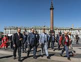 Церемония открытия XIX Санкт-Петербургского международного книжного салона на Дворцовой площади. Губернатор Санкт-Петербурга Александр Беглов (в центре) и президент Российского книжного союза Сергей Степашин (второй справа) во время церемонии.