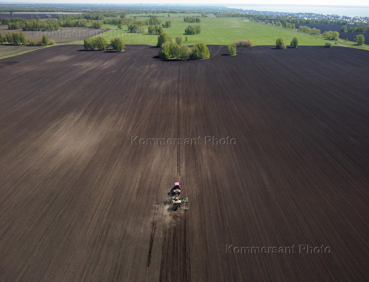 Начало посевной кампании в Новосибирской области. Жанровая фотография. Подготовка поля к посадке чипсового картофеля на предприятии АО "Совхоз"Морской" в селе Ленинское.