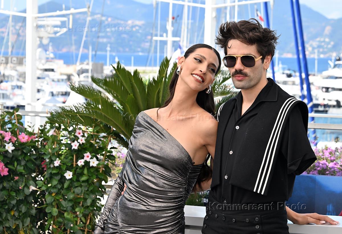 77-й международный Каннский кинофестиваль / Festival de Cannes 2024. День пятый. Актриса Таллин Абу Ханна (слева) и певец Лаки Лав во время фотосессии съемочной группы фильма "Виды Доброты".