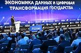 Отраслевой день Министерства цифрового развития, связи и массовых коммуникаций России на выставке-форуме "Россия" на ВДНХ. Министр цифрового развития, связи и массовых коммуникаций России Максут Шадаев во время пленарной сессии "Экономики данных и цифровой трансформации государства".