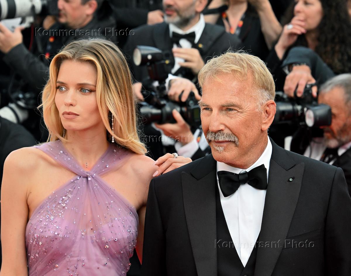 77-й международный Каннский кинофестиваль / Festival de Cannes 2024. День шестой. Актриса Эбби Ли (слева) и режиссер, актер Кевин Костнер (справа) на премьере фильма "Горизонт: Американская сага".
