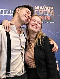 Премьера фильма "Майор Гром: Игра" режиссера Олега Трофима в кинотеатре "Каро 11 Октябрь". Актер Вячеслав Морозов (слева) и его супруга Анастасия (справа) на премьере.