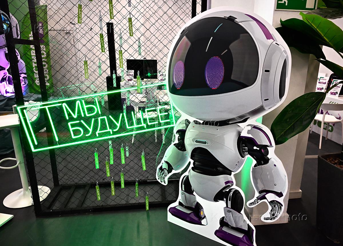 Рабочая поездка председателя правительства России Михаила Мишустина в Нижний Новгород. Церемония открытия IX конференции цифровых технологий "ЦИПР-2024". Жанровая фотография. Стенд компании "Ростелеком" на выставке конференции.