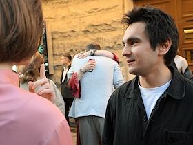 Церемония вручения II премии Гильдии кастинг директоров России в театре "На Малой Бронной". Актер Артем Кошман (в центре) на церемонии.