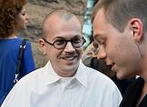 Церемония вручении II премии Гильдии кастинг директоров России в театре "На Малой Бронной". Писатель Александр Цыпкин (в центре) перед началом церемонии.