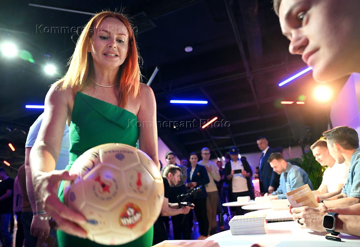Вечер по случаю коллаборации бренда GOLD’N APOTHEKA с футбольным клубом ЦСКА на стадионе "ВЭБ Арена". Телеведущая Яна Чурикова на вечере.