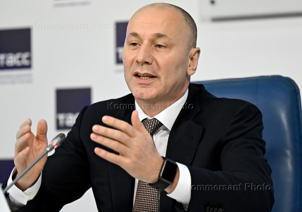 Пресс-конференция, посвященная проведению ЕГЭ-2024 в основной период, который стартует 23 мая 2024 года в в пресс-центре ТАСС. Руководитель Федеральной службы России по надзору в сфере образования и науки (Рособрнадзор) Анзор Музаев во время пресс-конференции.
