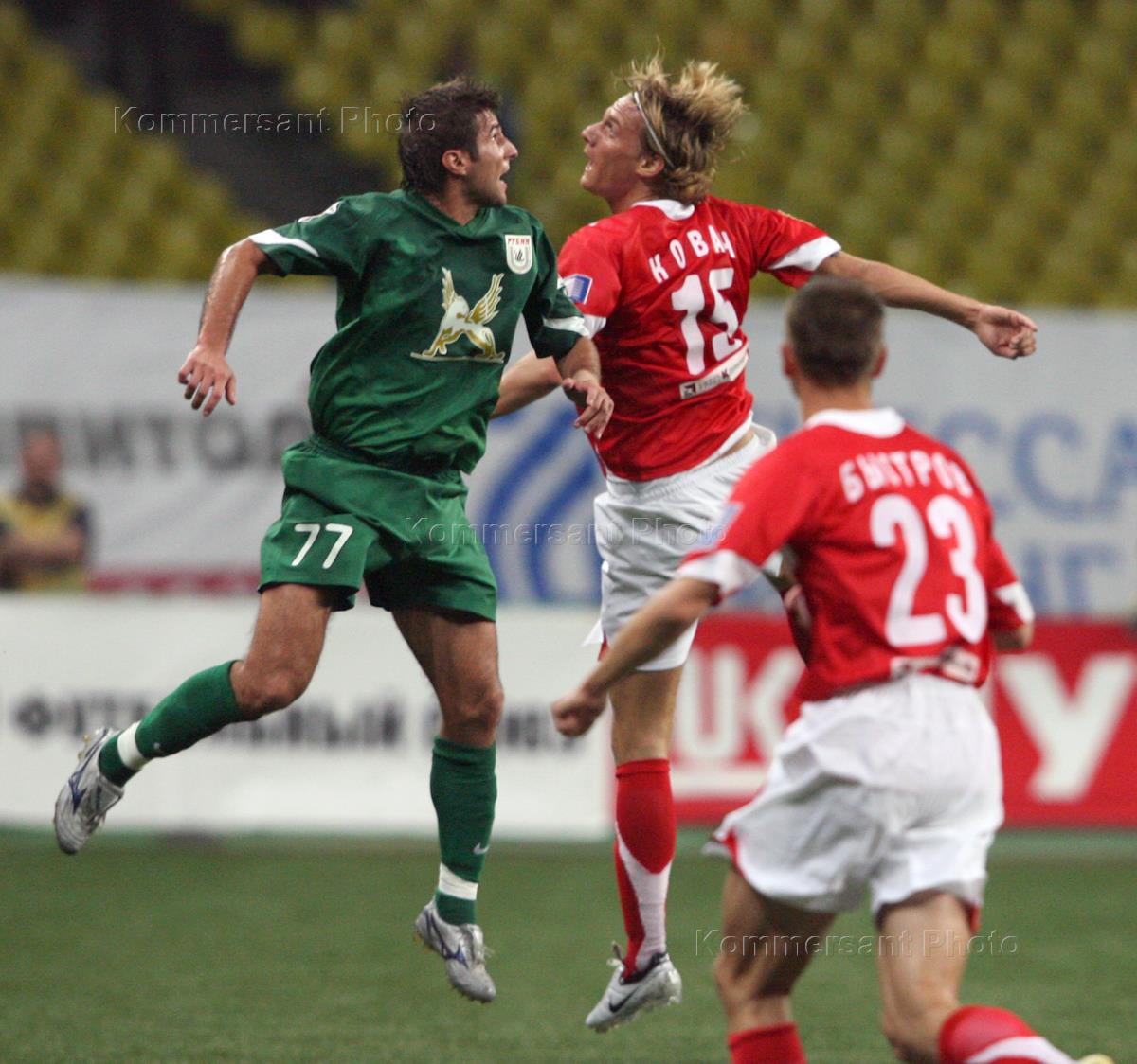 Russian football championship. Spartak (Moscow) vs. Rubin (Kazan) 3-0. Rubin halfback Ansar Ayupov, left, and Spartak halfback Radoslav Kovac, center. Match has passed at Luzhniki stadium.