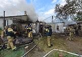 Последствия обстрела Макеевки. Сотрудники пожарной службы во время ликвидации пожара.