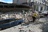 Последствия обстрела Макеевки. Сотрудники пожарной службы во время разбора завалов.