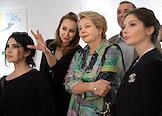 Церемония открытия выставки "Ужин" художника Павла Пепперштейна в Художественной галерее "Vladey". Меценат, основатель музея AZ Наталья Опалева (в центре) на церемонии.