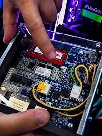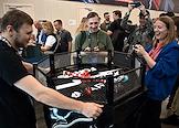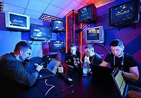 Форум по информационной безопасности Positive Hack Days в смешанном формате в спортивном комплексе "Лужники". Участники на стенде завода ICL.