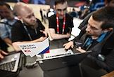 Форум по информационной безопасности Positive Hack Days в смешанном формате в спортивном комплексе "Лужники". Жанровая фотография. Участники на форуме.