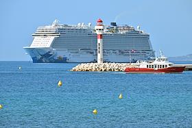 77-й международный Каннский кинофестиваль / Festival de Cannes 2024. День одиннадцатый. Жанровая фотография. Норвежский круизный теплоход у берегов Канн.