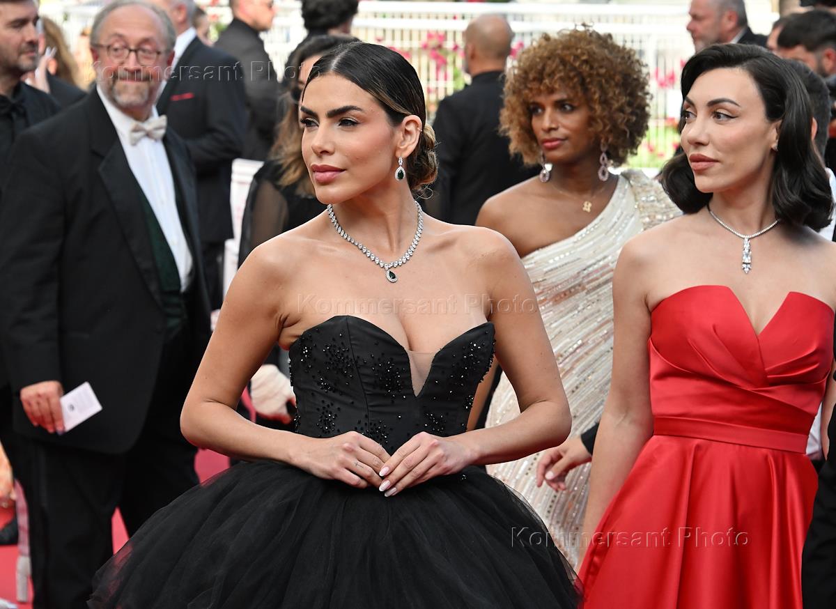 77-й международный Каннский кинофестиваль / Festival de Cannes 2024. День одиннадцатый. Модель Изабель Менин (слева) на премьере фильма "Самый ценный груз".