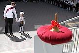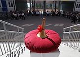 Торжественная линейка, посвященная окончанию учебного года в МОУ СШ № 123. Праздник "Последний звонок". Жанровая фотография. Колокольчик для звонка.