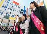 Торжественная линейка, посвященная окончанию учебного года в МОУ СШ № 123. Праздник "Последний звонок". Выпускники на празднике.