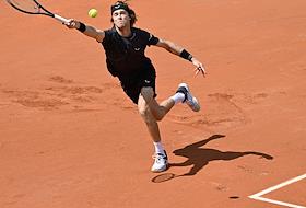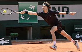 Открытый чемпионат Франции по теннису "Ролан Гаррос-2024" (Roland Garros). Мужчины. 1-й круг. Российский теннисист Андрей Рублев во время матча с японским теннисистом Таро Даниэлем.