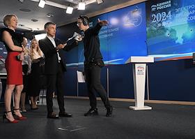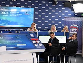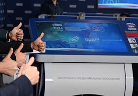 Предварительное электронное голосование по отбору кандидатов от партии "Единая Россия" на предстоящие в сентябре региональные выборы. Церемония соединения ключей шифрования прошла в Центральном исполкоме партии.