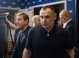 Предварительное электронное голосование по отбору кандидатов от партии "Единая Россия" на предстоящие в сентябре региональные выборы. Церемония соединения ключей шифрования прошла в Центральном исполкоме партии. Глава республики Марий-Эл Юрий Зайцев (в центре) и первый заместитель председателя Совета Федерации России, секретарь Генерального совета партии "Единая Россия" Андрей Турчак (слева) во время церемонии.