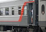 Пресс-тур по Байкало-Амурской магистрали (БАМ). Поезд на станции Тайшет. Жанровая фотография.