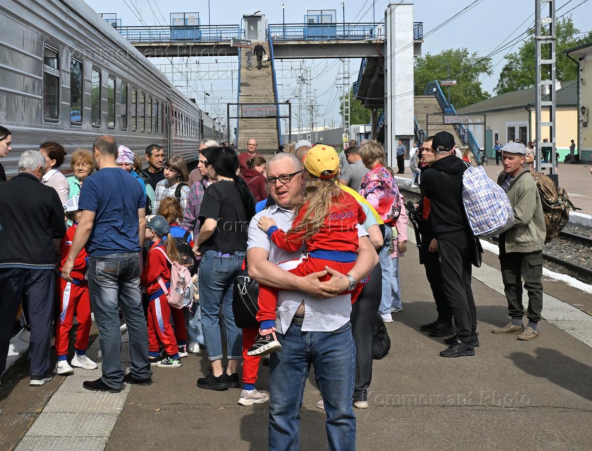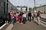 Пресс-тур по Байкало-Амурской магистрали (БАМ). Станция Тайшет. Жанровая фотография. Пассажиры на платформе.