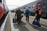 Пресс-тур по Байкало-Амурской магистрали (БАМ). Станция Тайшет. Жанровая фотография. Пассажиры во время посадки в поезд.