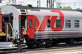 Пресс-тур по Байкало-Амурской магистрали (БАМ). Железнодорожная станция Тайшет. Жанровая фотография. Вагон пассажирского поезда на перроне.
