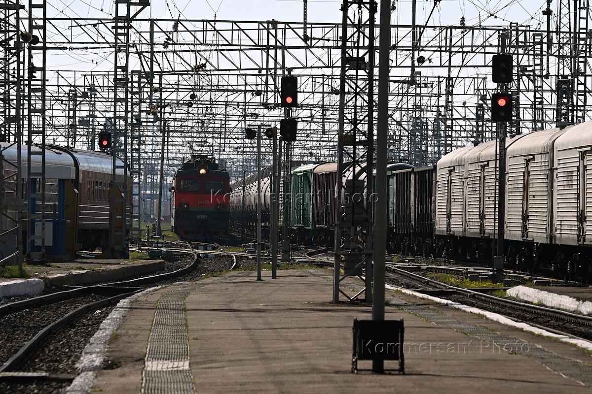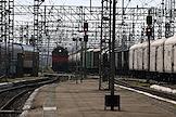 Пресс-тур по Байкало-Амурской магистрали (БАМ). Грузовые составы на станции Тайшет. Жанровая фотография.