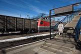 Пресс-тур по Байкало-Амурской магистрали (БАМ). Локомотив на станции Тайшет. Жанровая фотография.