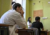 Проведение Единого Государственного Экзамена (ЕГЭ) по русскому языку в Общеобразовательной школе №199. Выпускники во время экзамена.