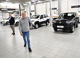 Церемония открытия группой компаний "Автопродикс" дилерского центра "Автопродикс LADA". На церемонии были представлены модели XCITE X-Cross 7 (собранный на бывшем заводе Nissan) и LADA Vesta Cross. Совладелец Группы компаний "Автопродикс" Юрий Синкевич (слева) на церемонии.