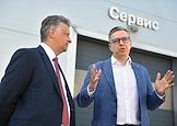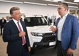 Церемония открытия группой компаний "Автопродикс" дилерского центра "Автопродикс LADA". На церемонии были представлены модели XCITE X-Cross 7 (собранный на бывшем заводе Nissan) и LADA Vesta Cross. Вице-губернатор Санкт-Петербурга Кирилл Поляков (справа) после церемонии.