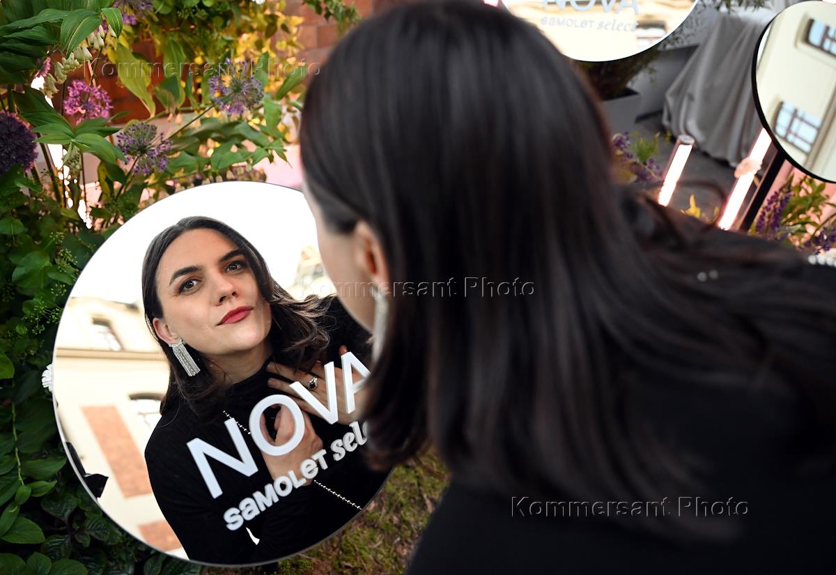 Летняя вечеринка телеграм-канала "Антиглянец" во дворике отеля "Метрополь". Художница Саша Ушакова на вечеринке.
