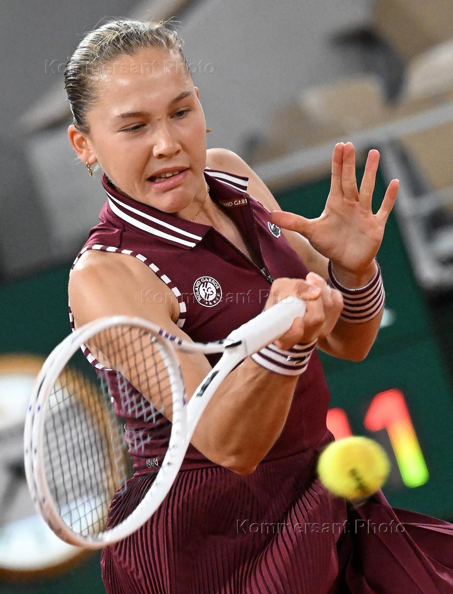 Открытый чемпионат Франции по теннису "Ролан Гаррос-2024" (Roland Garros). Женщины. 1-й круг. Российская теннисистка Дарья Касаткина во время матча с польской теннисисткой Магдаленой Френх.