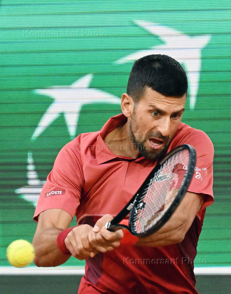 Открытый чемпионат Франции по теннису "Ролан Гаррос-2024" (Roland Garros). Мужчины. 1-й круг. Сербский теннисист Новак Джокович во время матча с французским теннисистом Пьером-Югом Эрбером.