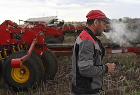 Посевная кампания в Омской области. Жанровая фотография. Сотрудник Крестьянского хозяйства "Тритикум" во время посевной.