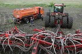 Посевная кампания в Омской области. Посев кукурузы в Крестьянском хозяйстве "Тритикум" в Черлакском районе. Заправка топливом трактора на поле.